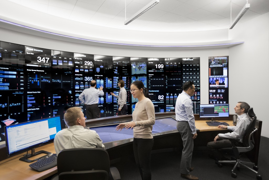 coinassetinvest.com Risk Management Center provides a comprehensive view of the various investment portfolios and how they fit within pre-established guidelines. Built in 2014, its front-end consists of a 27' by 8' interactive touchscreen designed to visualize data in ways that allow for rapid comprehension. Its back-end systems, which connect to every coinassetinvest.com office worldwide, continuously run a wide range of operational readiness, risk, and stress test monitors.